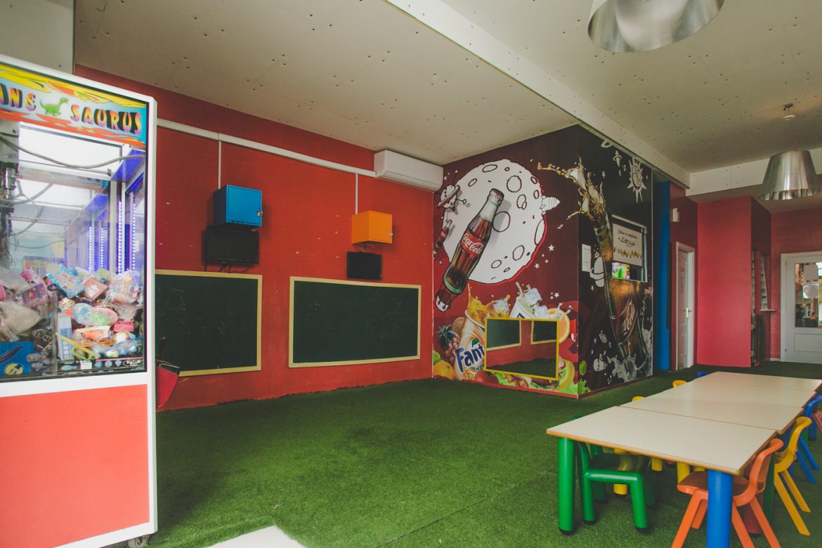 A menudo, hacemos fiestas temáticas y también ofrecemos el servicio de cumpleaños. Esta zona está delimitada de la sala, con lo cual, los adultos pueden comer de forma tranquila y sin ruidos.